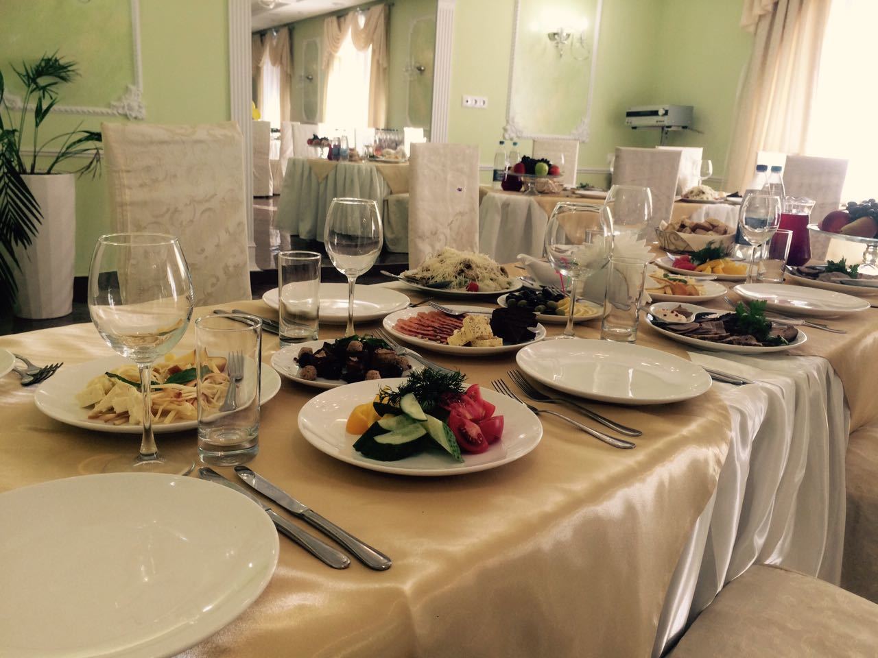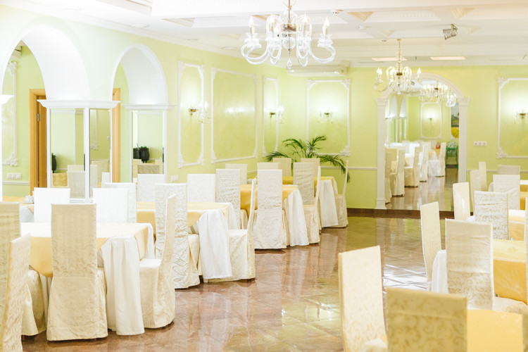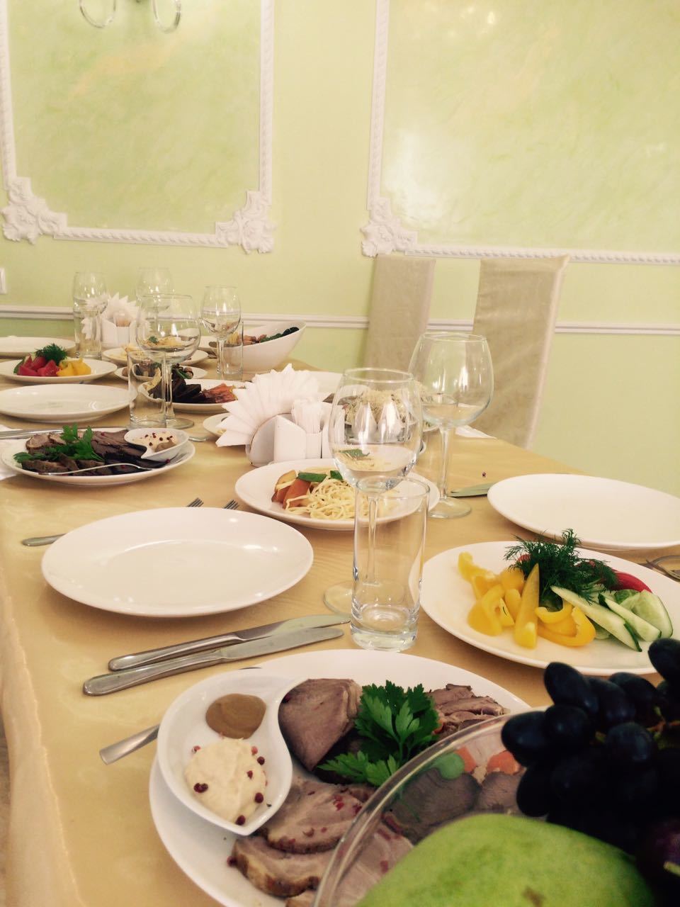 Была в этом ресторане на свадьбе подруги. Для торжеств – это отличное место. Большой просторный зал, понравилось, что интерьер светлый, благодаря этому помещение кажется еще больше. Зал украшен лепниной и красивыми люстрами. Повара готовят вкусно, понравилось все: закуски, салаты, горячее.