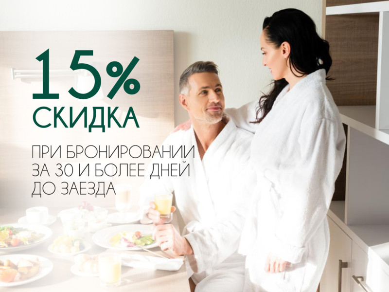 Бронируйте отдых в отеле «Грейс Кипарис» в период с 15 октября 2022 по 15 декабря 2022 за 30 и более дней и получите дополнительную скидку 15%